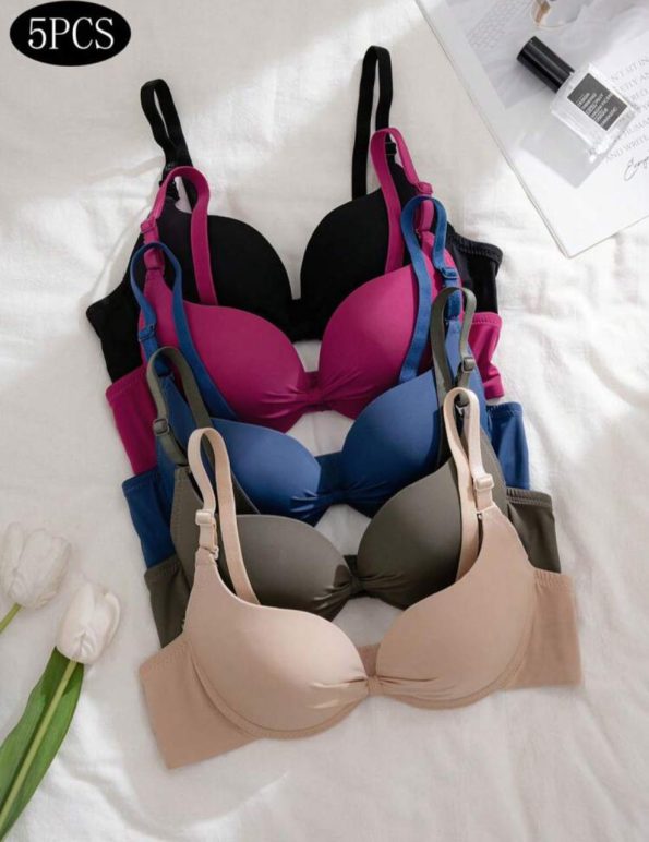 5pcs Women Detachable Shoulder Strap Bra With Bow And Steel Support