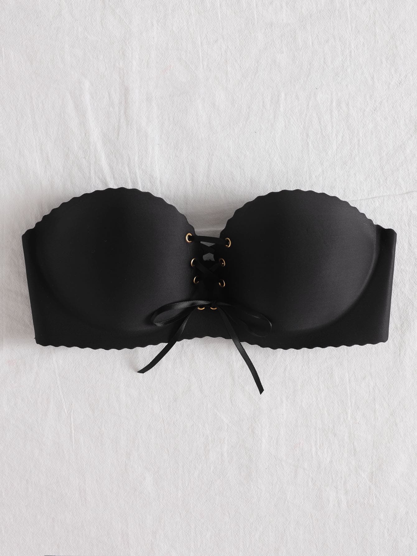 Scalloped Lace-Up Strapless Bra